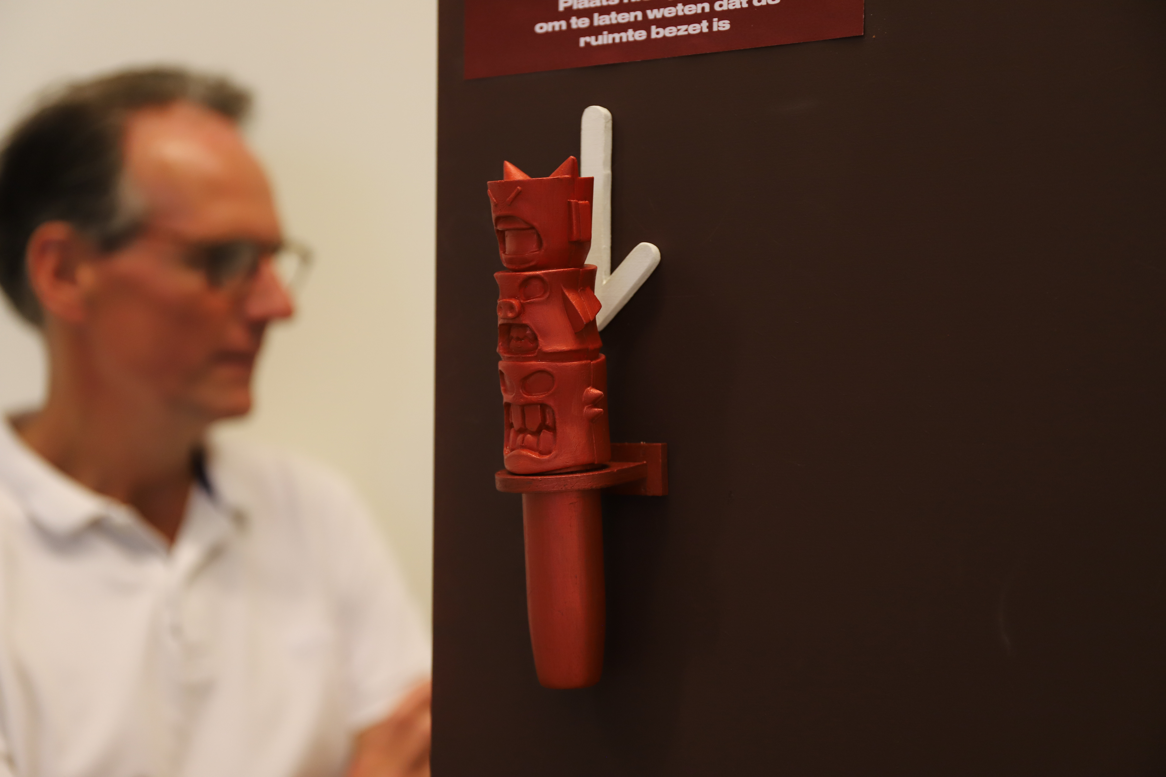 We zijn actieve wezens, we werken veel en komen weinig tot rust. Tijdens ons onderzoek kwamen wij tot de conclusie dat het toiletbezoek het enige moment op de werkdag is dat mensen helemaal alleen zijn. Dit biedt dan ook de mogelijkheid om tot jezelf te komen. Maar tot jezelf komen is voor iedereen verschillend. Waar de een zijn frustraties eruit wil slaan wil de ander zich meditatief hervinden. Om die transitie van werk naar tot jezelf komen te realiseren hebben wij twee "toiletten" ontworpen die mensen ondersteunt om even een pauze te nemen van werk.